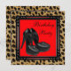 Modèle d'invitation de fête d'anniversaire élégant chaussure à talons hauts noirs et léopard rouge. Cette belle invitation de fête avec chaussure à talons hauts noirs et léopard rouge est facilement personnalisable pour votre événement en cliquant simplement sur le bouton "Personnalisez-le !" pour commencer à ajouter les détails de votre événement, le style de police, la taille et la couleur de la police, ainsi que le libellé. Veuillez noter que tous les autocollants, cartes et modèles d'invitation que vous trouverez sur Zazzle sont des graphiques imprimés sans véritables bijoux, rubans, parties ou pièces en relief, en creux ou ajoutées.