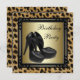 Chaussure à talon haut noir élégante et invitation pour une fête d'anniversaire sur le thème du léopard. Cette belle invitation pour une fête d'anniversaire sur le thème de chaussure à talon haut noir est facilement personnalisable pour votre événement en cliquant simplement sur le bouton "Personnalisez-la !" pour commencer à ajouter les détails de votre événement, le style de police, la taille et la couleur de la police, ainsi que le libellé. Veuillez noter que tous les autocollants, cartes et modèles d'invitation que vous trouverez sur Zazzle sont des graphiques imprimés sans véritables bijoux, rubans, reliefs, gaufrures ou pièces ajoutées.