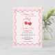 Faites de votre fête d'anniversaire une fête extra sucrée avec nos invitations d'anniversaire "Cherry on Top"! Délicatement ornées de cerises rouges vibrantes et de charmantes arcs roses, ces invitations donneront le ton parfait pour un bain à thème de cerise. Conçue avec amour et attention aux détails, chaque invitation dispose d'un motif ondulé fantaisiste qui ajoute une touche ludique au design général. La combinaison des cerises rouges et des arcs roses crée un contraste délicieux qui saisit l'essence du plaisir et de la douceur. Nos invitations sont entièrement personnalisables, vous permettant de les personnaliser avec les détails de votre fête, y compris la date, l'heure, l'emplacement et les informations RSVP. Choisissez parmi une variété de types et de tailles de papier pour répondre à vos préférences et à vos besoins. Que vous fêtiez un premier anniversaire ou une occasion marquante, nos invitations "Cherry on Top" sont le moyen idéal pour les amis et la famille invitations de se joindre aux festivités. Commandez la vôtre aujourd'hui et préparez-vous à créer des souvenirs aussi doux que des cerises !