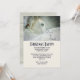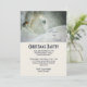 Une invitation à la fête de Noël avec une photo sereine représentant un beau cheval blanc avec un petit oiseau reposant sur le cou. Une chute de neige magique en hiver donne à l'image une qualité mystique merveilleuse. Police fantaisie dit : Paix sur Terre.