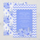 Plutôt bleue ravissante invitation à la douche nuptiale faite dans un chevron bleu et blanc motif, sur le devant décoré de fleurs bleues et blanches au fond. Une zone de texte bleu périwinkle, avec du texte blanc personnalisé, est prête à être personnalisée. Le déroulement de l'invitation se fait dans un motif floral bleu et blanc. Des fournitures de partie correspondant sont disponibles.