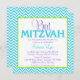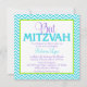Invitations de Bat mitzvah motifs chevrons modernes. Doté d'un motif de chevron bleu et blanc turquoise aux accents de violet et de vert citron. Un design de fille et de preppy !