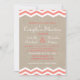 Les chevrons de corail et blancs sur un arrière - plan illustré de toile de jute accentuent cette invitation de douche. Le faire-part de mariage et les RSVP coordonnés sont disponibles ; cependant, si les articles supplémentaires sont nécessaires pour votre épouser juste contactez-nous chez prettyfancyinvites@gmail.com avec votre demande.
