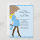 Commencez votre baby shower de petit garçon avec notre mère blonde moderne pour tenir un parapluie pois marron et bleu sur un arrière - plan pois bleu. Visitez notre boutique pour une large sélection d'invitations pour les douches pour bébés pour un baby shower pour bébés.