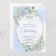 Make your special day unforgettable with this elegant watercolor wedding invitation, thoughtfully designed to shine with Zazzle’s premium print quality. Featuring soft pastel blue hydrangeas, delicate eucalyptus and greenery foliage, and a refined gold glitter oval frame, this invitation blends timeless romance with modern sophistication.