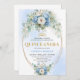 Invitation Chic Blue Peony Gold Script Quinceañera Invite