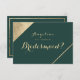 Serez-vous ma servante d'accueil? Une invitation chic et moderne vert de forêt et faux or chic Mariage Bridesmaid.Cette invitation de mariage de luxe géométrique or et vert de forêt est parfaite pour toute fille glamour classe et sophistiquée ou n'importe qui. Ce design est parfait pour les soirées tendance et élégantes. Customisez ce design avec votre propre message et des informations personnalisées. Tous les dessins sont imprimés.