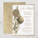 Cette invitation au design chic présente des ballons de fête en bronze et or ainsi que de fausses paillettes. Personnalisez ce modèle d'invitation avec les détails de votre fête d'anniversaire.