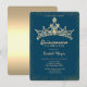 Couronne élégante sur l'invitation de la quinceañera bleue.