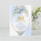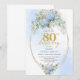 Invitation Chic Dusty Blue Floral Gold 80th Birthday Invite