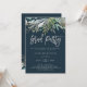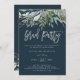 Ces invitations élégantes et minimalistes à des soirées grad présentent une verdure à l'aquarelle branchée et des feuilles botaniques sur un riche arrière - plan bleu foncé au script moderne argenté.