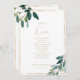 Ce chic tableau feuillu numéro 1 est parfait pour un mariage rustique. Le design présente un feuillage vert d'eucalyptus ornant un cadre géométrique doré. La carte imprime recto verso (recto verso)