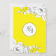 Arrière - plan moderne et chic, jaune vif, décoré avec des motifs floraux blancs délicats et modernes, dans le coin supérieur droit et le coin inférieur gauche. Combinaison de police chic de calligraphie élégante et de typographie serif au charbon de bois pour les détails de l'invitation d'anniversaire. Le dos de l'invitation présente les mêmes arrangements floraux avec un élégant monogramme de type fusain et médaillon blanc.