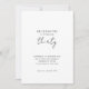Célébrez dans le style avec cette élégante invitation minimaliste de 30ème anniversaire avec un arrière - plan blanc propre, typographie moderne, et un accent manuscrit. Le dos comprend de l'espace pour une photo personnelle, ajoutant une touche unique et personnelle à votre célébration de jalon. Parfait pour une fête d'anniversaire chic et moderne.