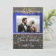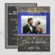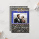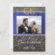 Une invitation chic noire et or avec soie bleue présente la photographie du couple.