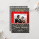 Une invitation chic noire et or avec de la soie rouge présente la photographie du couple.