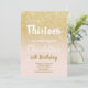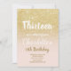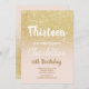 Faux jaune or parties scintillant ombre sur rose vif 13e anniversaire Une treize moderne invitation à la fête d'anniversaire avec une parties scintillant en faux or moderne, original et simple invitation et style manuscrit typographie de brosse sur un pastel rose vif entièrement personnalisable arrière - plan.