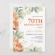 Élégante et élégante invitation à l'anniversaire floral présente étonnante aquarelle fleur de pivoine orange avec verdure dorée. Vous pouvez facilement customiser les détails de la fête, y compris l'âge pour le rendre encore plus personnalisé. Partagez la joie avec vos amis et votre famille et faites de ce jalon anniversaire un souvenir!