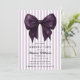 Host a memorable birthday party with this chic and modern invitation, adorned with classic lavender and white vertical stripes. A striking, deep purple bow graces the front, offering a sophisticated focal point for the celebration announcement. All necessary event information is presented in elegant typography, guiding your guests to the festivities. The back includes a convenient 'SCAN HERE' section with a QR code, streamlining the RSVP process and adding a high-tech touch to your traditional party planning. This design is perfect for anyone seeking a blend of style and ease.