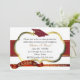 Elégante invitation à la fête de graduation faite en blanc et rouge, avec des accents de ton or. Une zone de texte décorative en or bordée de blanc a du texte jaune doré et noir prêt à être personnalisé. Arrière - plan blanc, avec des graphiques d'un ruban rouge et or au milieu, un casquette de mortier de diplômé rouge, au sommet, et une bannière rouge et or, au fond. Une belle invitation à la fête de remise de diplômes.
