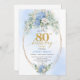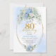 Celebrate a remarkable milestone with this 80th birthday invitation featuring one of today’s most trendy and elegant color combinations: blue and gold. Designed with soft watercolor blue hydrangeas, fresh eucalyptus greenery, and refined gold floral accents, this invitation brings a sense of calm sophistication and joyful celebration to an unforgettable occasion.