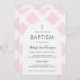 Invitation Chic rose blanc Croix d'or Arc Baptême bébé