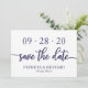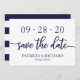 Chic Script Marine Bleu Mariage Blanc Enregistrer La Date Invitation