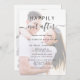 Faire-part de mariage tout-en-un moderne avec votre photo superposée avec votre invitation customisée et "Happily Ever After" écrit dans un mélange de typographie simple et un script chic avec des swashes. Au contraire, personnalisez les détails de votre RSVP dans une typographie élégante et entrez l'adresse de votre site Web mariage pour créer un code QR que vos invités pourront scanner en ligne vers RSVP et pour obtenir des détails mariages supplémentaires tels que les hébergements et les itinéraires.
