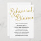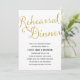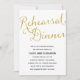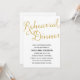 Cet élégant invitation de dîners de répétition présente de magnifiques calligraphies et une feuille brillante en faux or.