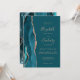 The left-hand edge of this elegant modern wedding invitation features a teal watercolor agate border trimmed with faux rose gold glitter. The customizable text combines rose pink handwriting, copperplate and italic fonts on a teal background. The reverse side features a matching teal and rose gold agate design.