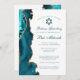 L'agate turquoise et or chic orne le côté de cette cérémonie Bat mitzvah élégante et de l'invitation à la fête. Le nom de votre fille est écrit dans une belle écriture cursive sous l'étoile turquoise de David. Un design moderne et tendance pour une jeune fille juive appelée à la Torah.