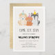 Cette mignonne invitation à l'anniversaire "viens, viens, reste" présente trois chiens chiots avec des casquettes de fête sur un arrière - plan beige clair encadré par une bordure blanche. L'envers comporte un arrière - plan de parties scintillant en faux or. Personnalisez pour vos besoins.Vous pouvez trouver plus de produits correspondants dans mon magasin.