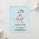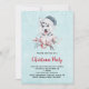 Invitation à la fête de Noël avec un tableau blanc et mignon d'aquarelle d'un chien husky portant un chapeau de Père Noël bleu.