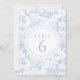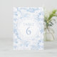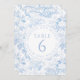 Classic élégant bleu chinoiserie porcelaine inspiré motif floral printemps ou d'été mariage des numéros de table avec les noms de mariée et de mariée.