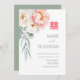 Chinois Elégant Double Bonheur Mariage Invitation avec Eucalyptus Peonies. Traditionnel mais aussi moderne. Vous avez la possibilité d'ajouter les informations détaillées à l'arrière. Il est facultatif. Si vous voulez laisser le dos vide, il suffit de supprimer le texte dans la zone de personnalisation.