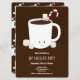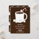 Une invitation de vacances pour une fête de Noël au chocolat chaud dans les tons marron et blanc. Cette invitation comprend une tasse souriante de cacao chaud avec un sucre de canne et plusieurs guimauves joyeuses. Tous les mots peuvent être customisés.