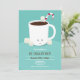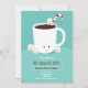 Une invitation de vacances pour une fête de Noël au chocolat chaud. Cette invitation comprend une tasse souriante de cacao chaud avec un sucre de canne et plusieurs guimauves joyeuses sur un arrière - plan turquoise léger. Tous les mots peuvent être customisés.