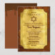 Invitation Bar Mitzvah billet d'or en chocolat. Ce serait également un excellent choix pour une invitation Bat Mitzvah billet d'or en chocolat ou en bonbons. Le design présente un fond de chocolat fondu avec un billet d'or en surimpression. Il y a une étoile de David juive et le texte, tout en restant traditionnel, reflète également le thème du billet d'or car en haut, il est écrit "Salutations aux découvreurs de ce billet d'or". Le numéro de billet indiqué sur l'invitation est la date de l'événement Bar Mitzvah ou Bat Mitzvah. Cette invitation Bar Mitzvah ou Bat Mitzvah billet d'or est parfaite pour un Bar ou Bat Mitzvah sur le thème du chocolat ou des bonbons.