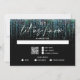 RSVP abstrait moderne - Une guirlande de sarcelle audacieuse et scintillante cascade vers le bas de la page, avec une calligraphie manuscrite "faites-le nous savoir" - les initiales du couple en haut - le reste du texte est simple et épuré - le tout sur fond noir. Papeterie de mariage élégante.