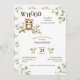 Une petite chouette mignonne aux grands yeux demande à Whooo qui est prêt à célébrer la nouvelle arrivée - parfait pour votre animal boisé ou le baby shower sage à thème hibou. Le petit hibou brun avec ses grands yeux expressifs est assis sur une branche d'arbre, avec de petits bouquets de feuillage vert tout au long de la conception et dans un motif sur le dos.