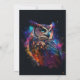 Chouette spatiale colorée hibou univers coloré halloween, beau dessin branche sauvage, illustration spatiale oiseau, peinture animale hibou coloré,