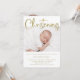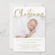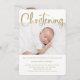 Cette invitation Christening simple et élégante comprend deux photos de votre bébé, avec une élégante typographie de script en faux or moderne.