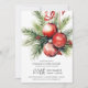 Elegant Christmas / Open House / Dinner Party Invitation template with modern watercolor Christmas baubles, fir branches, bow, and ribbon. Impress your friends with this sophisticated and elegant invitation design. It's fully customizable!