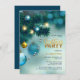Invitation CHRISTMAS PARTY Blue Gold Tree Baubles Parties sci