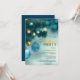 Invitations personnalisées de Noël moderne en bleu, or, vert. Arrière - plan aux lumières scintillantes et baubles avec branche de pin. Modèle modifiable - ajoutez simplement votre texte. Tout le texte peut être modifié police, couleur et taille. Parfait pour la fête à la maison, la fête de bureau, le dîner de fête de vacances bash ou toute autre occasion de saison d'hiver.