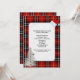 Invitation de fête de vacances avec casquette de Père Noël et bonhomme de neige sur écossais écossais tartan plaid arrière - plan
