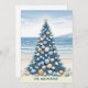 A sweet exotic Christmas design with a Christmas tree made of shells, with the ocean and mountains in the background. You can personalize this invitation with your own details.