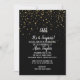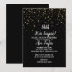 Cette invitation de fête d'anniversaire Chut ! C'est une surprise de confettis dorés sur fond noir est parfaite pour une célébration d'anniversaire élégante. Le design présente de faux confettis dorés sur un fond noir avec une calligraphie blanche élégante.