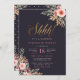 Préparez-vous à une fête d'anniversaire surprise avec ce design élégant. Cette invitation présente des bouquets de rose aquarelle dans les coins supérieur droit et inférieur gauche avec un arrière - plan noir profond, élégant script de style en lettrage parties scintillant or pour le "Shhh!" avec un point pois rose et motif floral sur le dos. Ajoutez vos propres détails en cliquant sur le bouton "personnaliser ce modèle" et en tapant dans les zones de texte et rappelez-vous, restez silencieux !