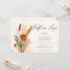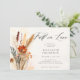 Un magnifique bouquet de fleurs sèches, de fleurs sauvages, de verdure et d'herbe de pampas, peint dans une aquarelle délicate et romantique, avec des tons de terre brun, beige et orange, créent un cadre floral élégant pour cette invitation à la douche nuptiale d'automne avec un thème de chute d'amour, qui comprend également la calligraphie moderne. Le design est un mélange intemporel de sophistication classique et le charme ludique des fleurs, parfait pour le romantique moderne. Idéale pour un fiançailles d'automne, cette invitation convient à la fois à l'élégante mariée et mariée bohème et à ceux qui planifient une fête de jardin, une fête de jardin, ou un événement formel dans les jardins d'un château. Un beau choix pour les épouses qui recherchent une touche de fantaisie de la nature avec une élégance raffinée.